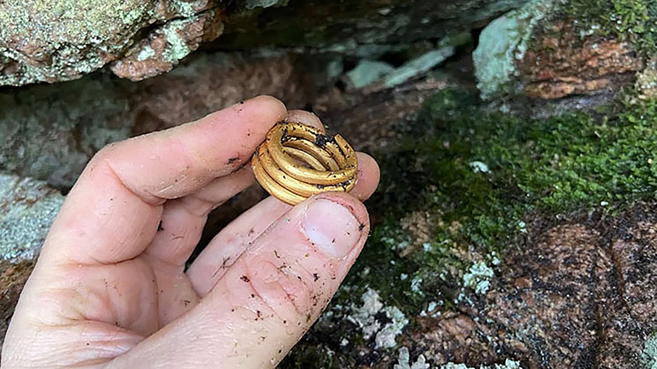– Andra guldfynd från järnåldern har gjorts i dessa trakter, exempelvis i gravar, men här är fyndomständigheten lite egen och spännande. Vi åkte ut till fyndplatsen den 27 januari och avsökte den med hjälp av en så kallad pinpointer, en handhållen metalldetektor som gjorde det möjligt att komma åt att söka i den trånga skrevan. Men som förväntat hittade vi inga nya fynd. Det var ju tydligt att någon har varit noga med att gömma undan just bara denna ring. Och att det skedde för länge sedan framgår av att ringen hade en grå beläggning.