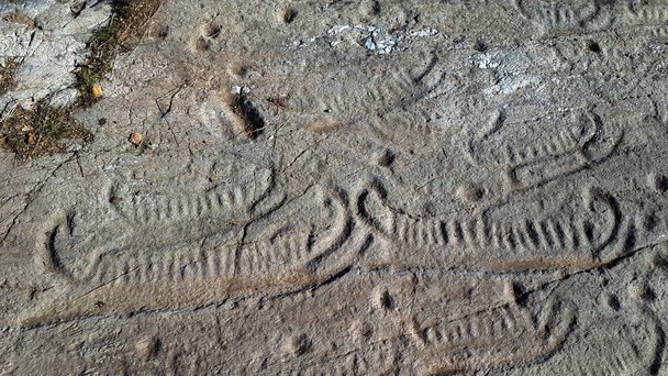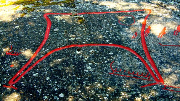 SENARE BESÖKTE HON hällen tillsammans med en vän och hittade ytterligare tre skepp. Sven-Gunnar har också varit ute och godkänt nyfyndet med acklamation. Detta är det första säkra fyndet av bronsåldersfigurristningar i Stockholms stad. Troligen knackades de in under den yngre bronsåldern för snart 3 000 år sedan.